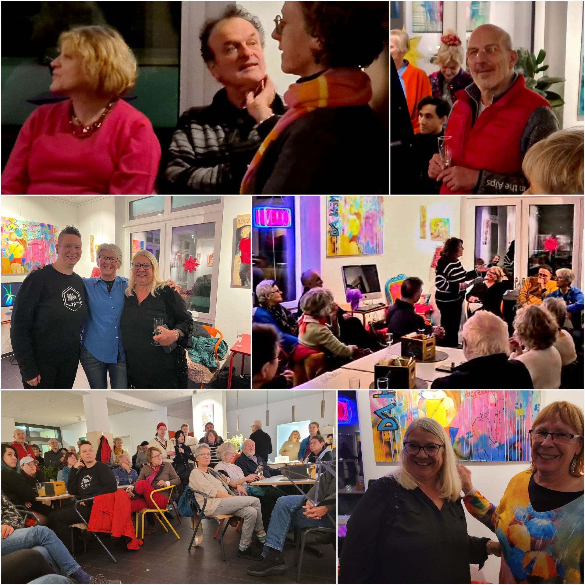 Farbenintensive Freundinnen, Paare und Gruppen, die miteinander lachen und zusammenstehen, füllen den Raum. Daheim ist dort, wo man liebt und lebt.
